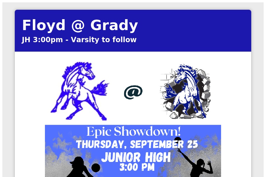 Floyd @ Grady JH 3:00pm - Varsity to follow