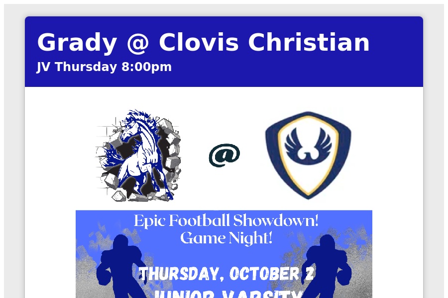Grady @ Clovis Christian JV Thursday 8:00pm