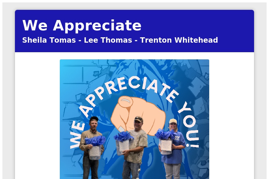 We Appreciate Sheila Tomas - Lee Thomas - Trenton Whitehead