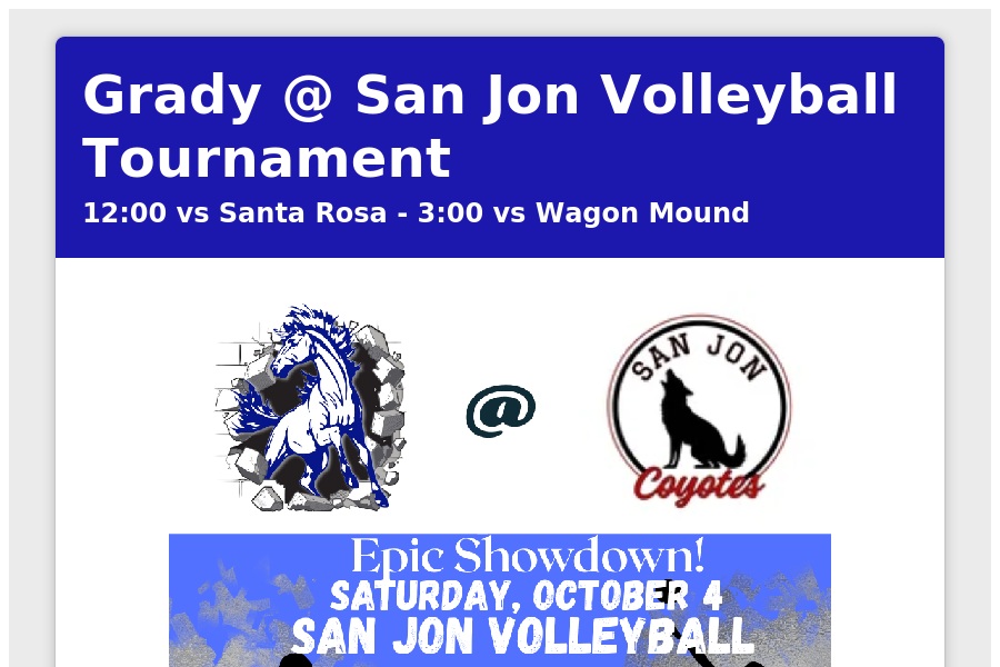 Grady @ San Jon Volleyball Tournament 12:00 vs Santa Rosa - 3:00